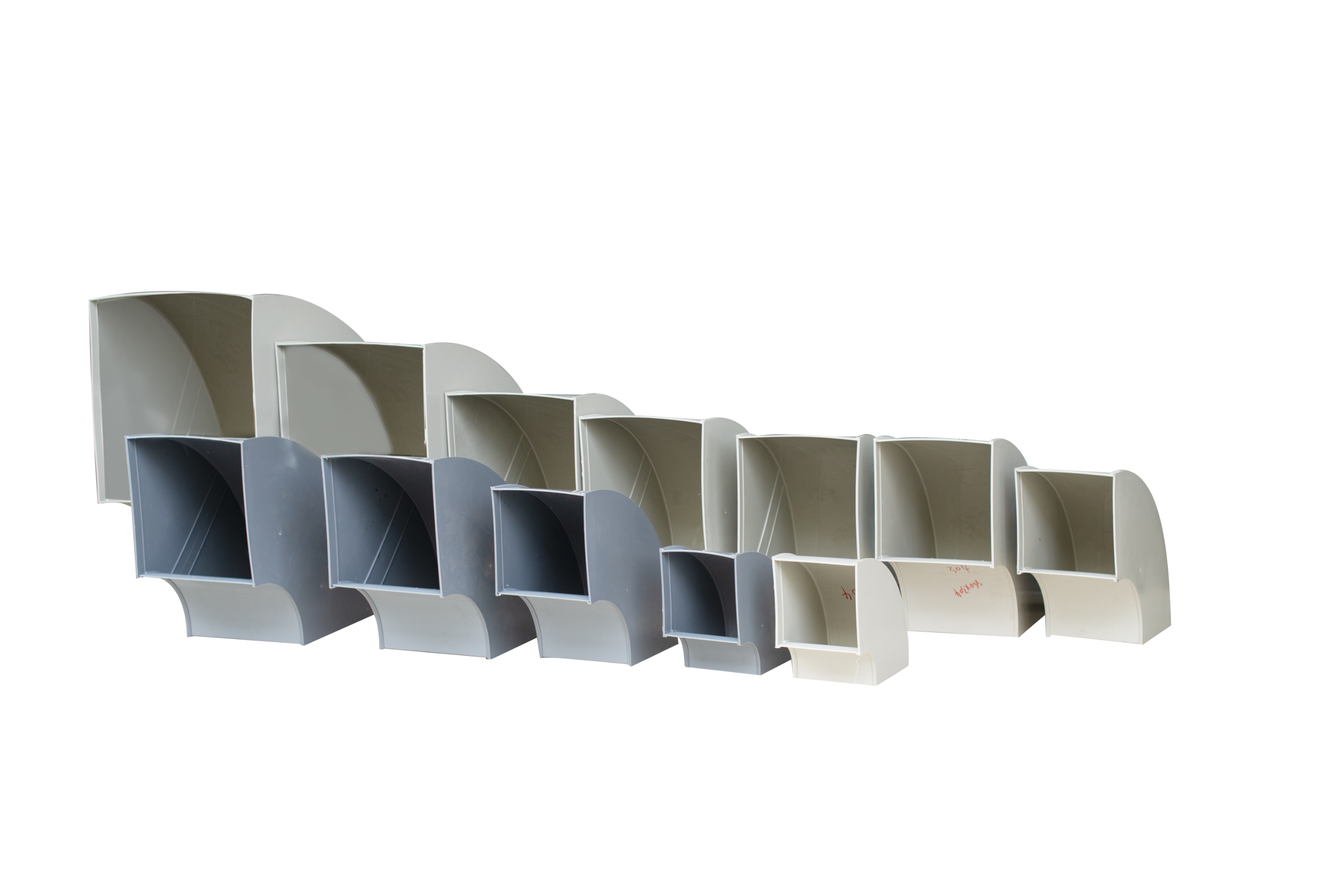 熙誠環保組合成型PP方彎頭采用一體注塑拼接組合設計,表面光滑無毛刺,結構穩定,耐老化,使用壽命長,節省人工成本。