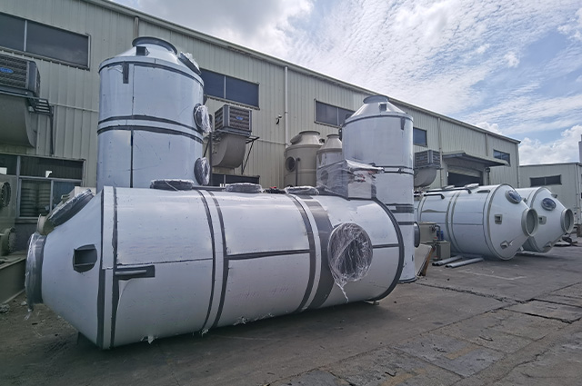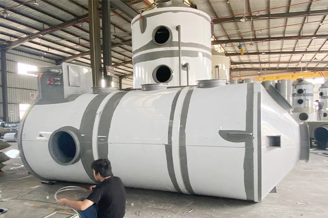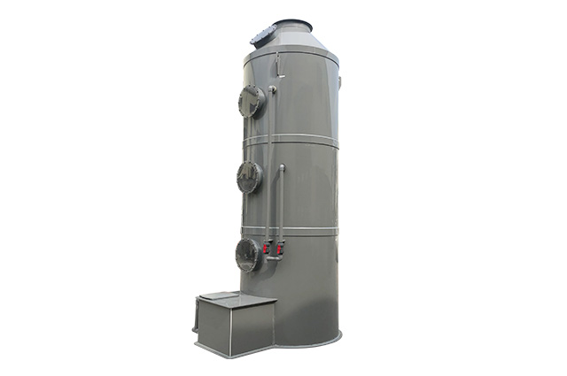 PP廢氣塔工作原理:對于腐蝕性氣體(如酸、堿性廢氣)的治理,多采用液體吸收法治理。采用液體吸收法治理廢氣,pp廢氣塔具有結(jié)構(gòu)簡單、能耗低、凈化效率高和適用范圍廣的特點(diǎn),能有效去除氯化氫氣體(HCl)、氟化氫氣體(HF)、氨氣(NH3)、硫酸霧(H2SO4)、鉻酸霧、氰氫酸氣體(HCN)、堿蒸氣(NaOH)、硫化氫氣體(H2S)、福爾馬林(HCHO)等水溶性氣體。酸霧廢氣由風(fēng)管引入廢氣塔,經(jīng)過填料層時(shí),廢氣與吸收液進(jìn)行氣液兩相充分接觸吸收中和反應(yīng),酸霧廢氣經(jīng)過凈化后,再經(jīng)除霧板脫水除霧后由風(fēng)機(jī)排入大氣。吸收液在廢氣塔底經(jīng)水泵增壓后在塔頂噴淋而下,最后回流至塔底循環(huán)使用。凈化后的酸霧廢氣達(dá)到地方排放標(biāo)準(zhǔn)的排放要求,低于國家排放標(biāo)準(zhǔn)。