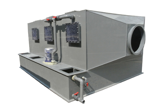 PPs臥式噴淋塔相對于立式噴淋塔而言,臥式噴淋塔高相對較低,塔底接觸面積較大。廢氣進出口橫向通過噴淋塔,與其他設備連接方便,臥式噴淋塔適用于室內使用。熙誠環保可根據客戶需要選用PPs阻燃板材或者PP板材制作,設計尺寸也可根據客戶定制。