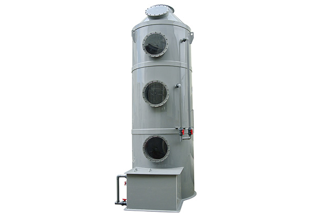 洗滌塔系統的風機組將收集到的廢氣吸入酸霧PPs阻燃洗滌塔內,流經填料層段(氣/液接觸反應介質),讓廢氣與填充物表面流動的藥液(洗滌液)充分接觸,以吸附廢氣中所含的酸性或堿性污物,廢氣經過洗滌后,達標排放。